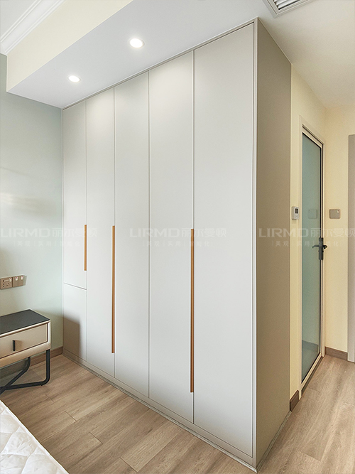 臥室選用一門到頂的pet膚感膜柜門,簡潔又大方~