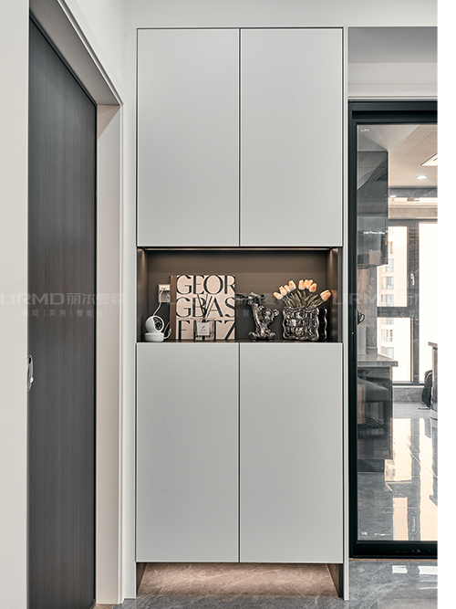 實木柜體搭配PET膚感柜門,一門到頂,質感超不錯,多組設計更是實現收納需求,