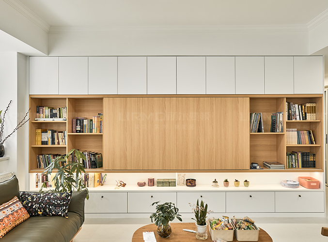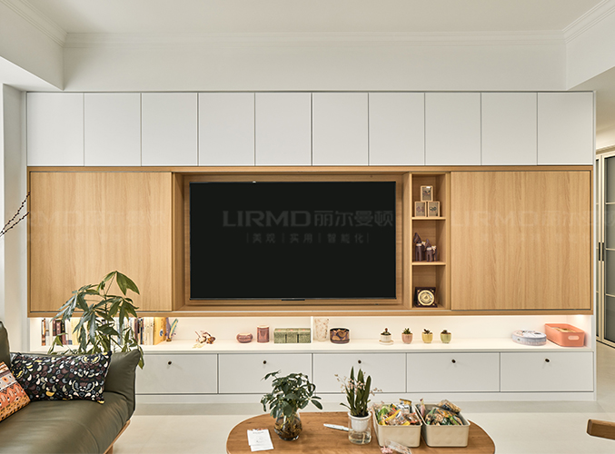一整墻柜子視覺效果美觀且大氣,實木柜體搭配PET膚感柜門,一門到頂,質感超不錯,