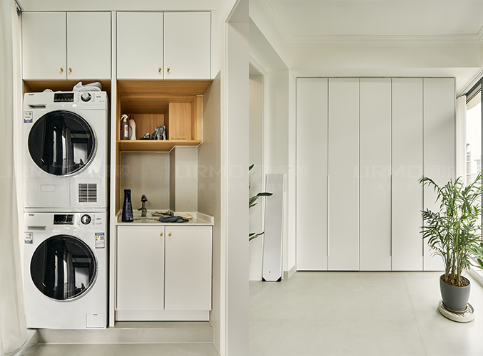 陽臺采光好,內嵌式洗衣機設計,加上洗漱柜設計,不占空間,一門到頂柜子設計,盡顯大氣。