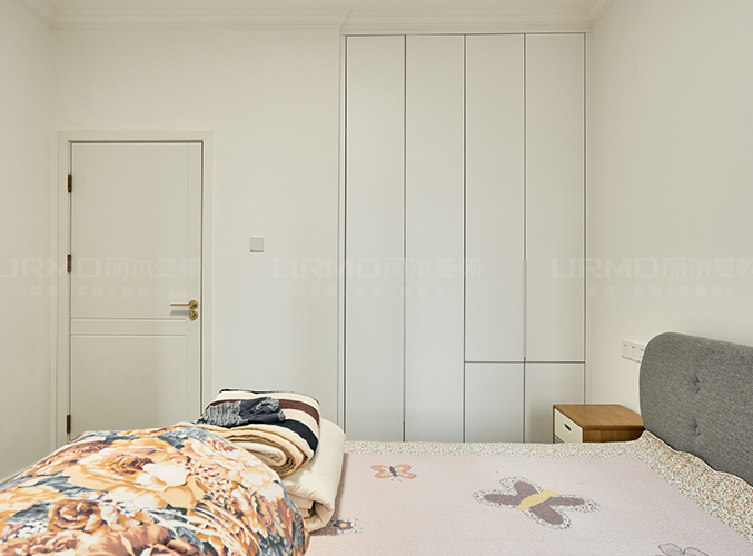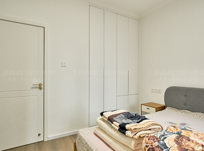 整體的墻柜很好的利用空間,收納大大的提升,無拉手設計,更顯極簡。