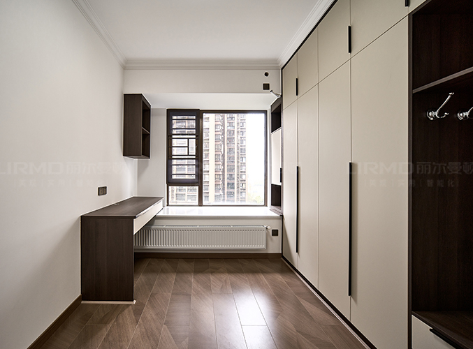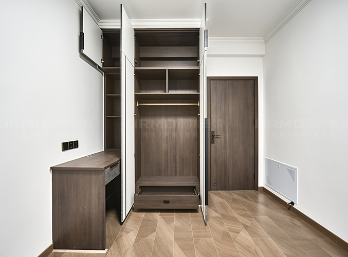 18mm厚杉木芯板,長廊兩側(cè)分別置鞋柜和儲物柜,視覺效果更好,下方懸空設計,好放置鞋子,