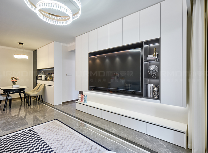 整屋通鋪瓷磚,盡顯大氣,整墻電視背景墻設(shè)計(jì),右邊和下方內(nèi)嵌式設(shè)計(jì),