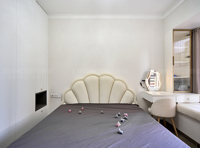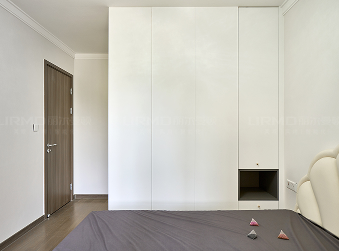 入式衣帽間,方便收納更多衣物、包包等,反面一門到頂衣柜,靠窗做懸空梳妝臺,