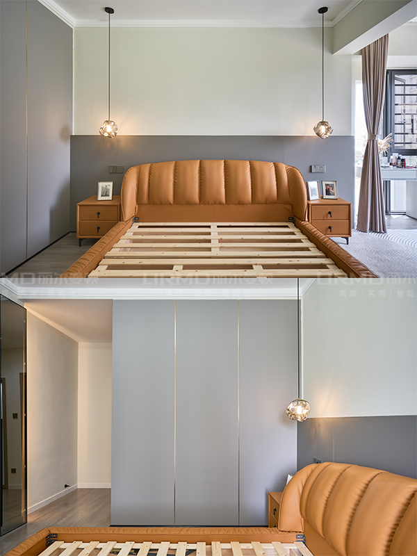 柜體采用足18厚杉木芯板,柜門采用LSB板PET膚感柜門,一門到頂,五金使用原裝進口的百隆五金