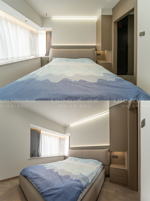 全房柜子是玻璃柜門與木制柜門相結(jié)合,既通透又顯高級,搭配各種手辦設(shè)計感滿滿