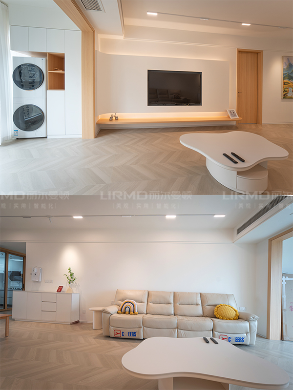 600*1200木紋大磚通鋪,與整體色調相呼應,放大空間的同時又不失溫馨。