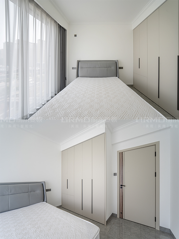次臥整版衣柜、兒童房整版衣柜、主臥雙“一”字型衣帽柜、書房書柜、陽(yáng)臺(tái)洗衣柜、