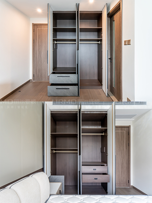 柜體采用18厚杉木芯板,柜門采用歐松板PET膚感柜門,