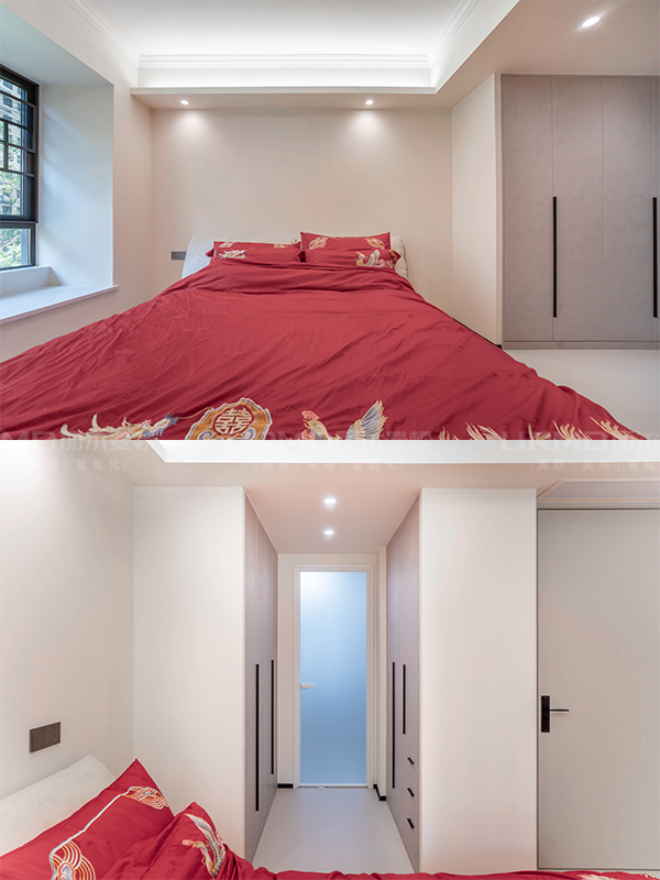 長沙靠譜裝修公司,長沙靠譜全屋定制,臥室衣柜加梳妝臺,現代侘寂風,