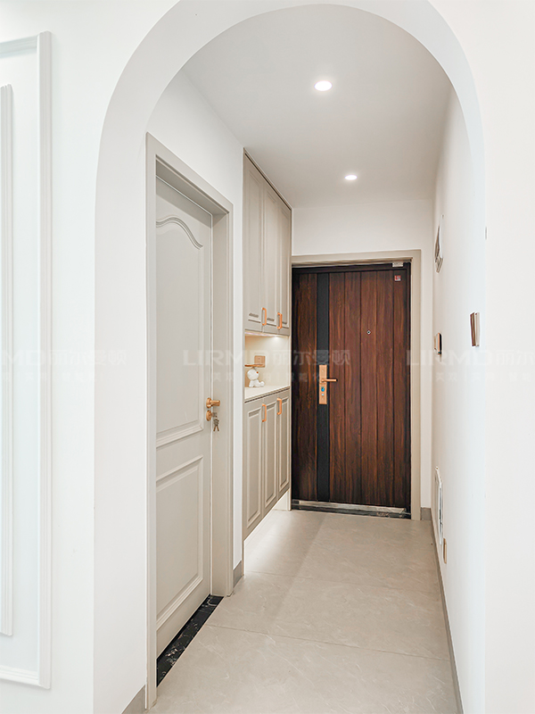 采用弧形門洞,廚房門吊軌帶弧形,整體線條顯得更靈動
