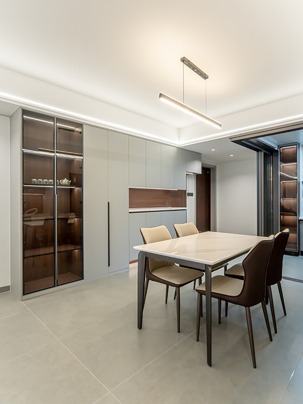 開(kāi)放式餐廚一體化,讓原本單調(diào)乏味的空間添加了互動(dòng)交流的樂(lè)趣,讓業(yè)主在做餐時(shí)不再孤立