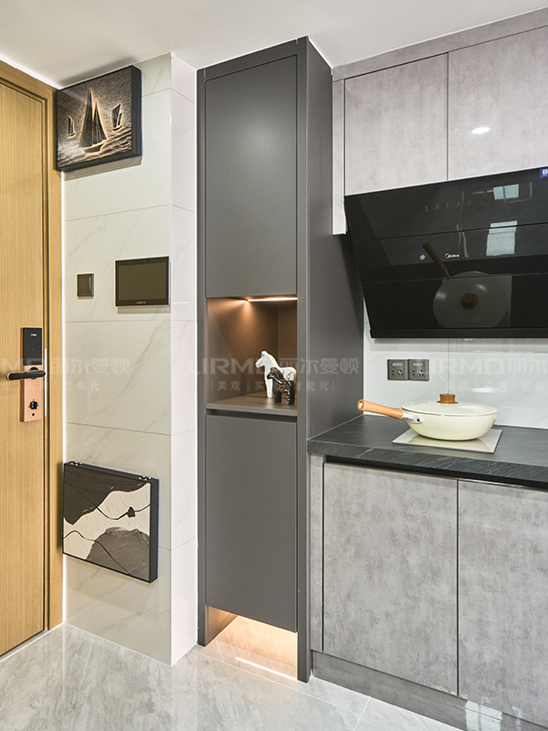 配色簡潔、耐看,選用的濟(jì)州灰雙飾面板材和淺色的軟裝相互照應(yīng)