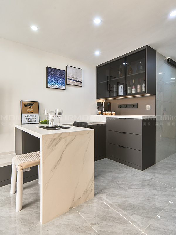 以黑白灰為基調(diào),濟(jì)州灰板材暈染讓空間并不會顯得陰沉又顯得極為高級耐看