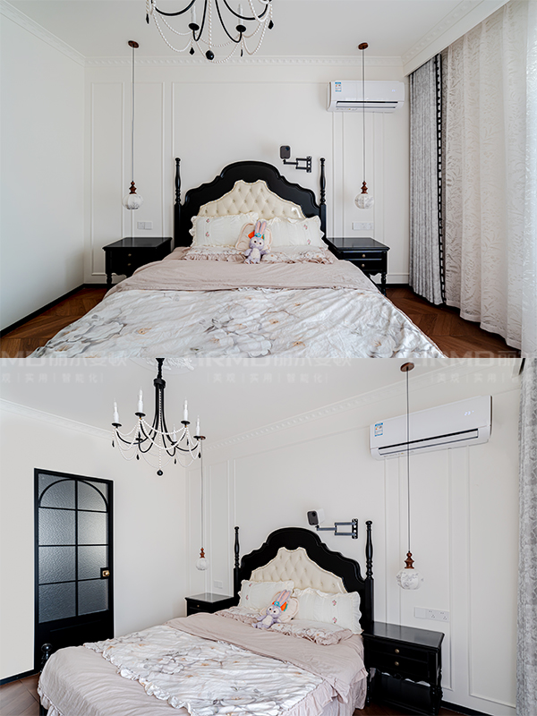 臥室墻面:精美的石膏線框墻是法式的靈魂,勾勒出清晰的層次和立體感。