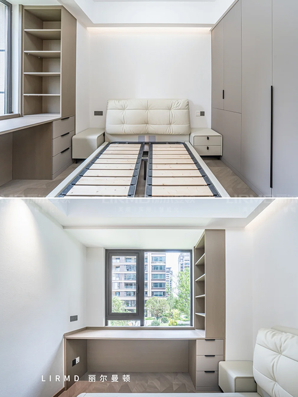 長沙靠譜裝修公司,長沙靠譜全屋定制,臥室衣柜加梳妝臺,意式極簡風,